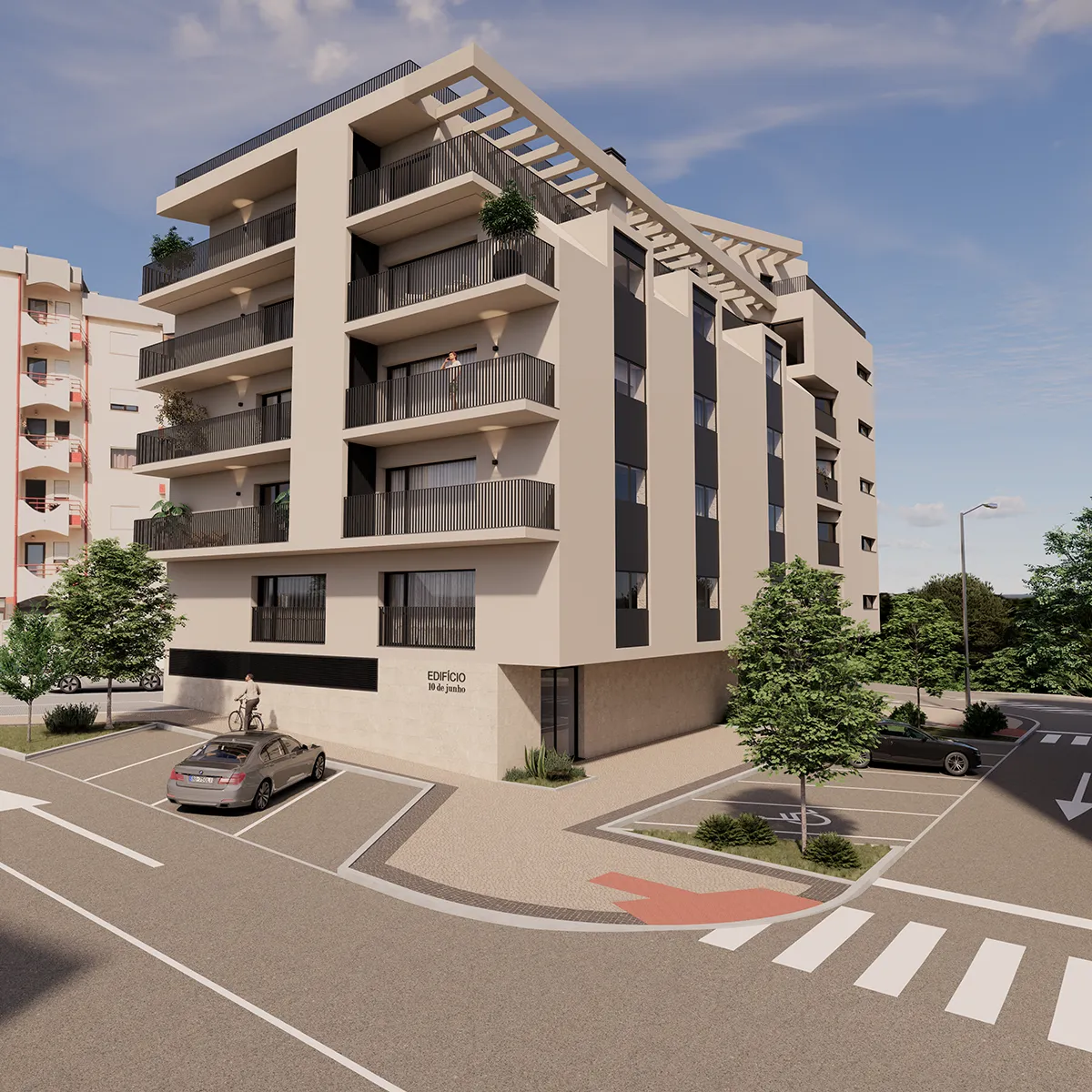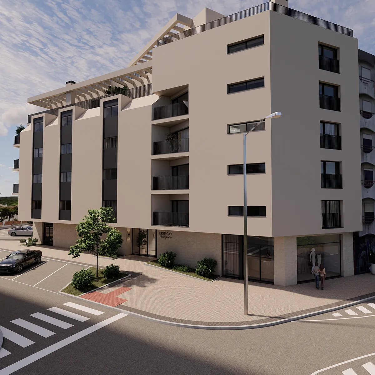 Comprising 14 two-bedroom apartments and a commercial space on the first floor, the 10th of June Building was designed for those who value functionality, comfort, and a complete urban environment, with schools, shops, services, healthcare, and the Sanctuary of Fátima just steps away.